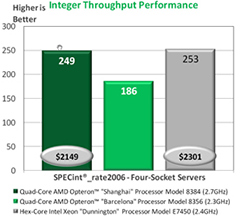 AMD’s internal benchmarks on integer performance—traditionally an Intel strength—show Shanghai now at parity with its Hapertown competitor, only AMD has a notable price advantage.