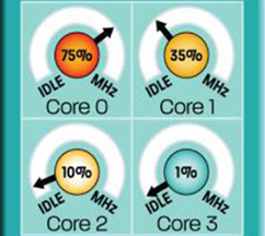 Each Barcelona (and Shanghai) core has the ability to modify its own frequency according to system demand. This results in far less power consumption under normal conditions.